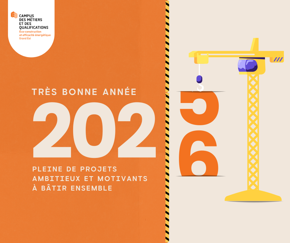 Le Campus des Métiers et des Qualifications Éco-construction et Efficacité énergétique vous souhaite une année placée sous le signe de l’engagement, de l’innovation et de la coopération au service des transitions écologiques.